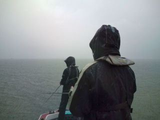 バイブレでスタート。この時点では曇りですが、すぐに大雨に・・・。