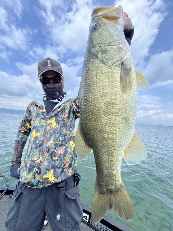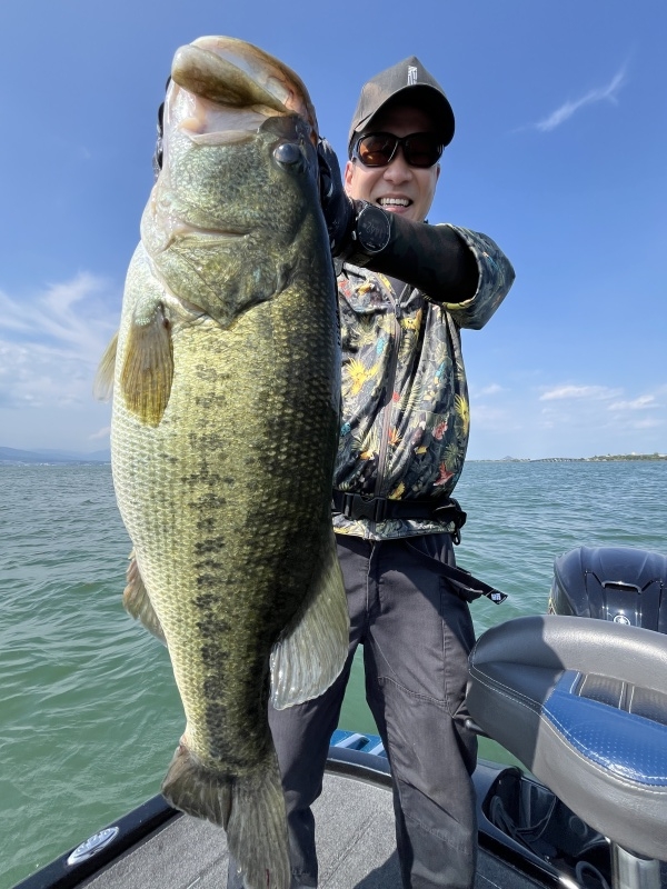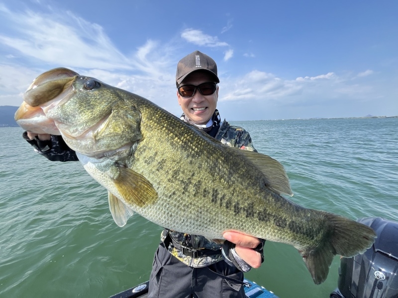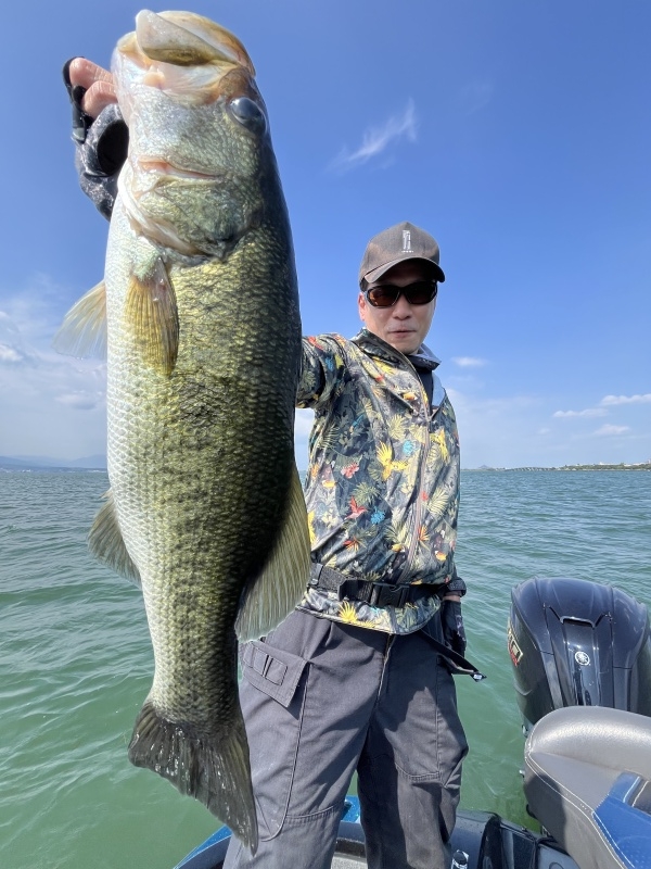 穏やかな天候で春展開で釣っていくと。ゲストさんに春らしいビッグでジャイアントなサ...