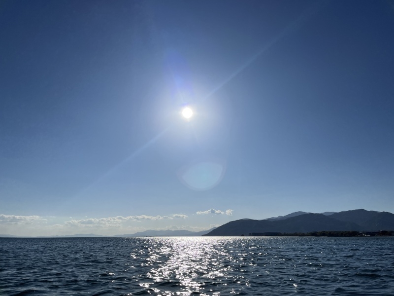 晴れて穏やかな朝はいつものように湖上へ。