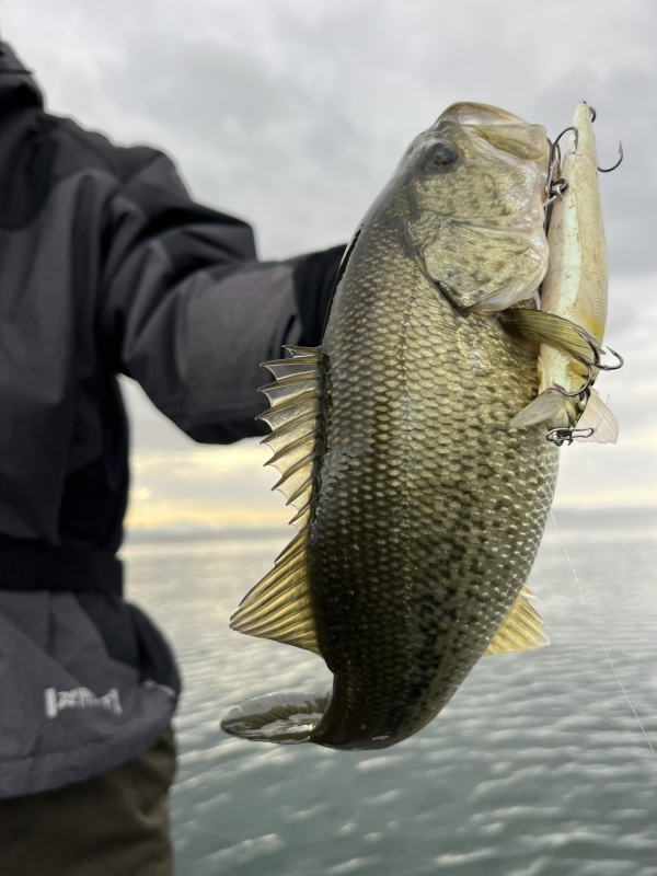 雨予報な朝は冷え込みもなく穏やかな湖面。まずはいきなりジャークベイトでワンキャス...