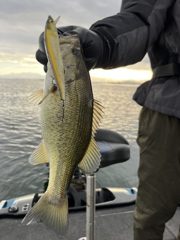 12月らしい寒い朝ですが穏やかな湖面にゲストさんと。さっそくゲストさんにヒット~...