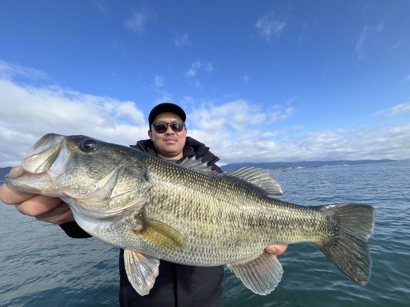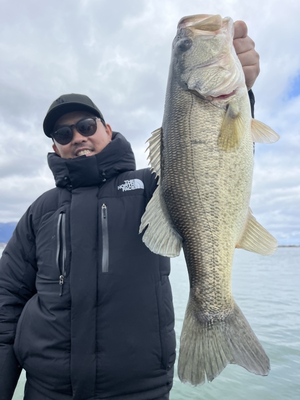 3月15日大熊ガイド「季節進行で気持ちの良い穏やかな湖面で45up×2匹」