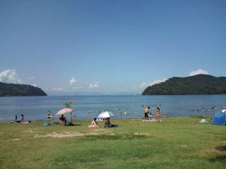 3日はガイドが急遽キャンセルとなったため、琵琶湖へ泳ぎに行ってきました。場所は近所の沖ノ島対岸の宮ヶ浜(国民休暇村)のあるところです。