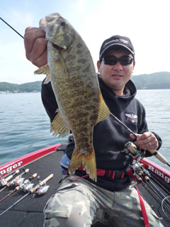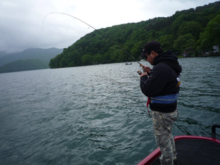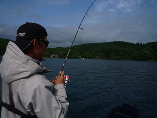 でも、この日は鬼形氏、国保氏共に絶好調で。最近の野尻湖が釣れ釣れ状態なのも相まって、連続ヒット!