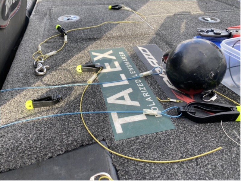 ダウンリガーのウェイトがゲストさんの操作ミスで落ちてしまったので、新しいウェイトをセットしてクリップ等を再設定し直す。