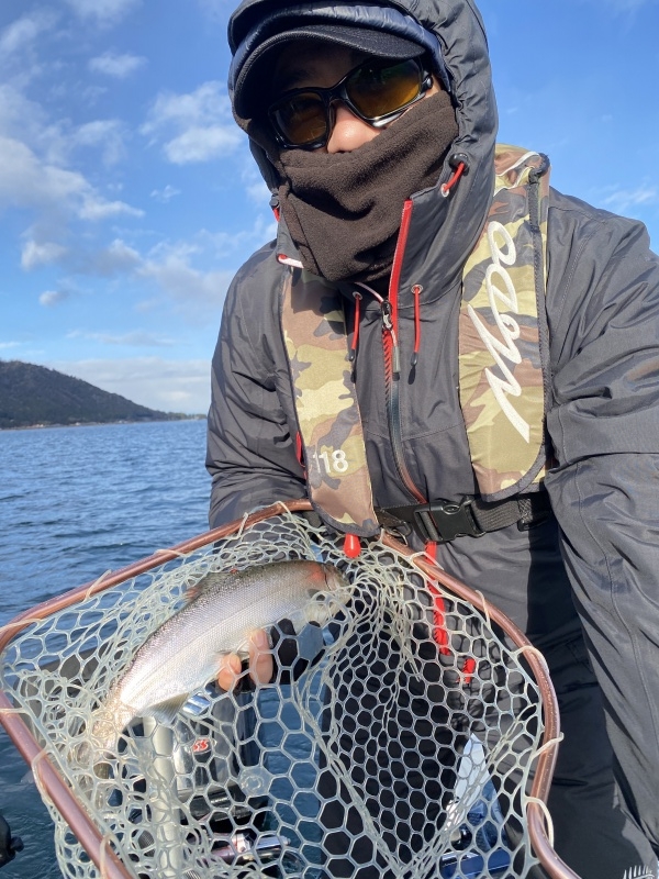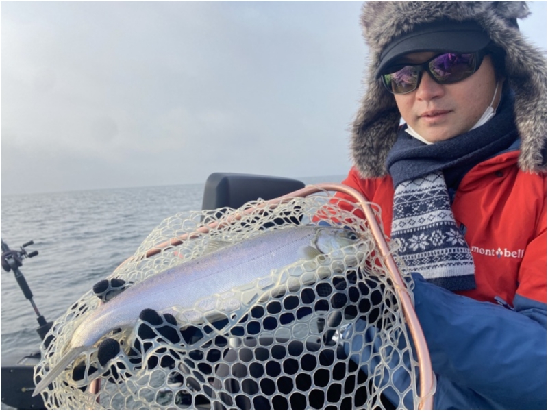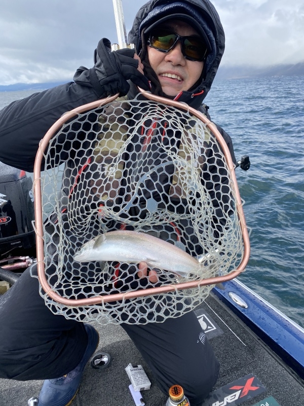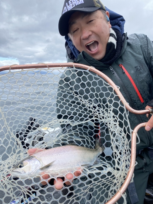 朝からウグイラッシュの後に、ビワマスが釣れ始めるも、13時で仕事のために移動が必要とのことで終了。