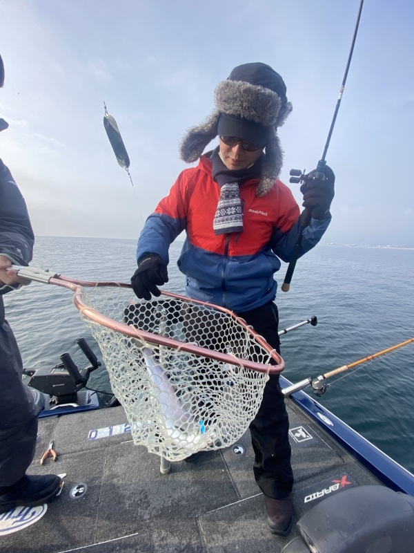 本日はビワマスガイド。この日は朝からラッシュにはいって、投入したらすぐ釣れるモードで一気に6.7本まで1時間程度で釣ってしまう。その後はウグイ祭りになって、ラストにリミットメイクお二人10本到達。