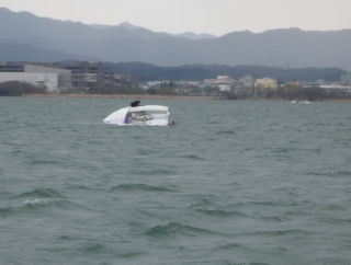 ヨット部の人たちも転覆していますが、昔、助けに行ってヨットの監督さんのボートに怒られた事があります。彼らは転覆から戻すのも練習の一つらしいです。