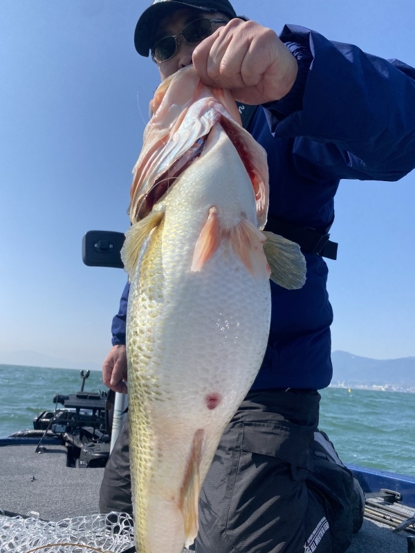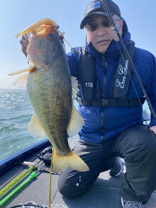 3月16日平村ガイド「スイミングジグ&リズムウェーブ、サイコロラバーRDSで59㎝・4100g、56㎝」