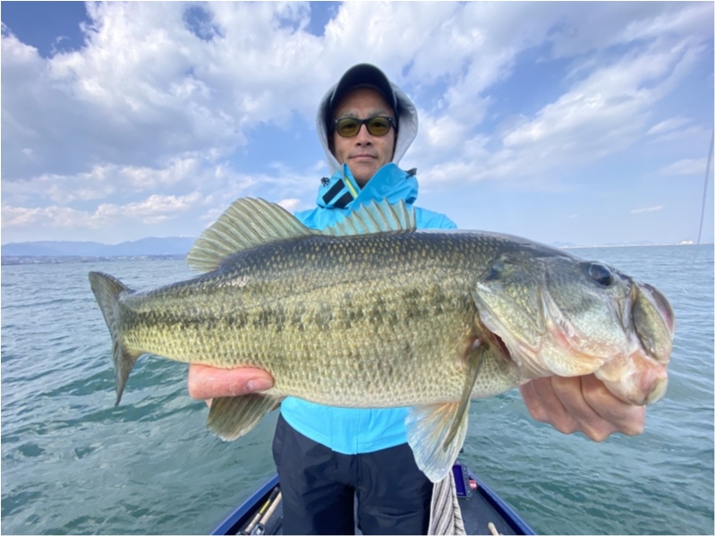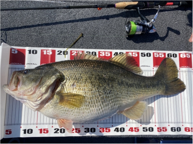 ようやく水温が上昇してきたタイミングでスイミングジグでロクマルまであと少しの59㎝。