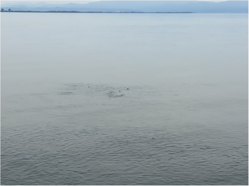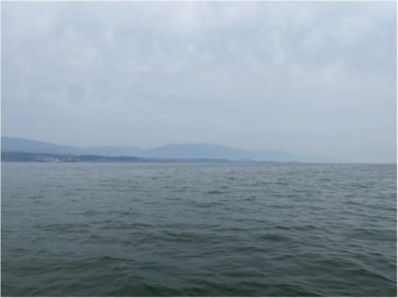 湖上に出ると南風が強く、まだ南エリアで雨が降っていそうなのでゲストさんレインウェアの無いとの事でコンビニに買いに行かれる。