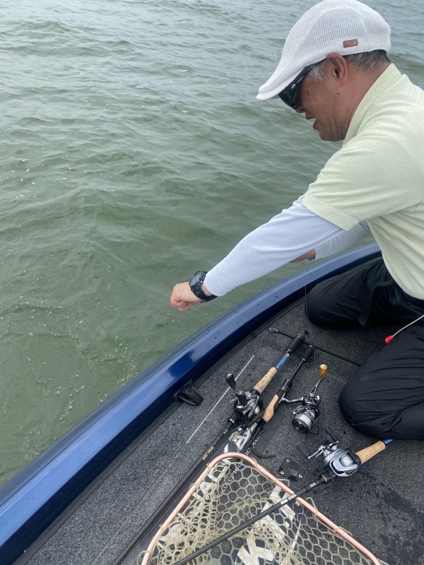 やはり現役プロの実力は桁違いでした。魚のいるスポットに入れば100%釣っていく。普段のガイドだと20%から50%ぐらいゲストさんに釣って頂ければ、OKなんですが、現役のTOP50プロだと完璧に釣ってしまう。
