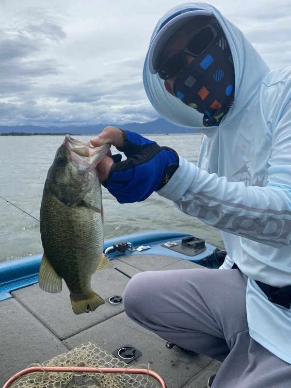 なんとか琵琶湖上空は避けてくれたので、ギリギリ湖上で釣りが出来るものの、いつでも避難体制をとったままの落ち着かない展開。