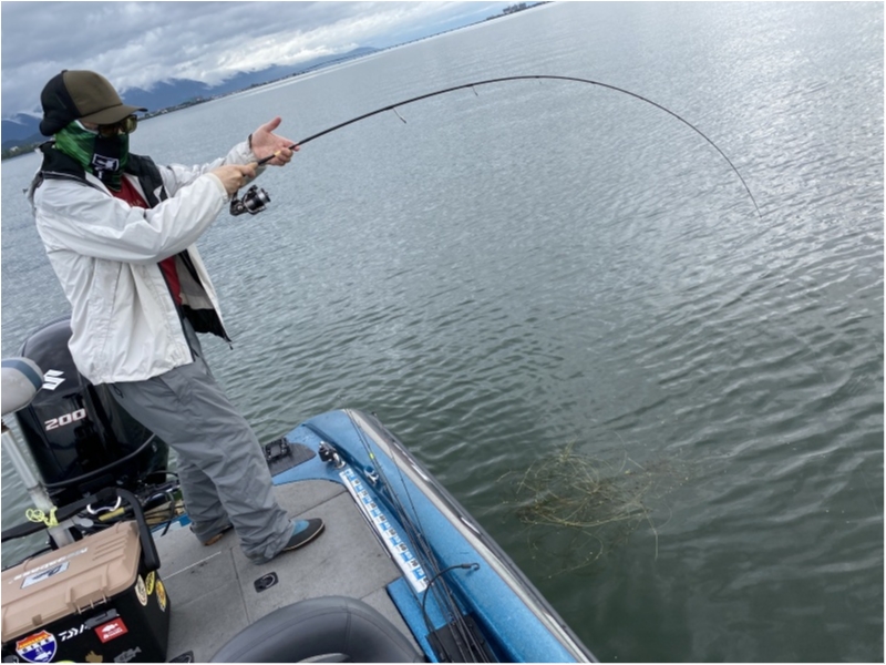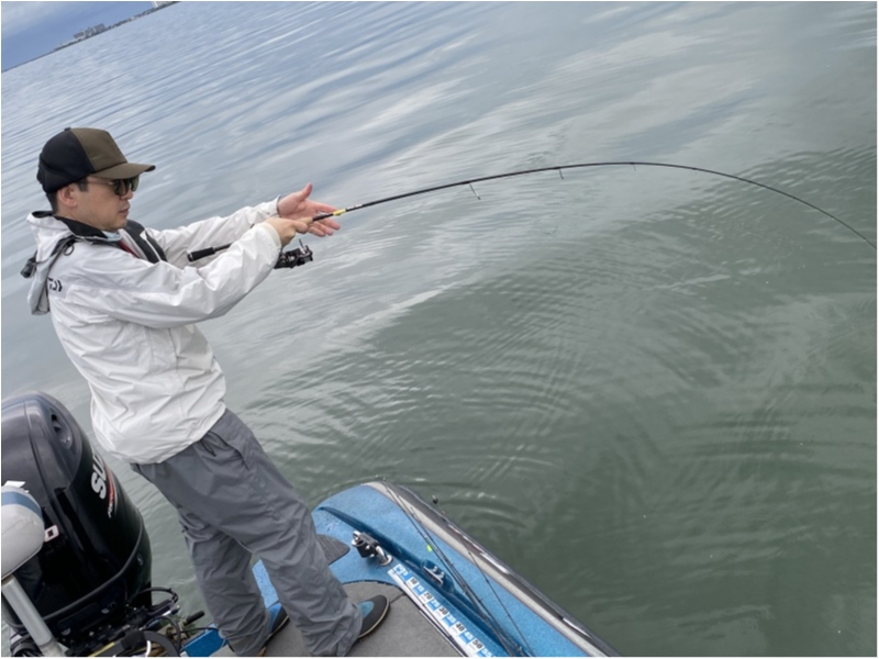 ST610MLのバットはハードなので、ティップでスッとソフトに入っても、バットでフッキングは決まり、50アップのバスは浮いてくる。