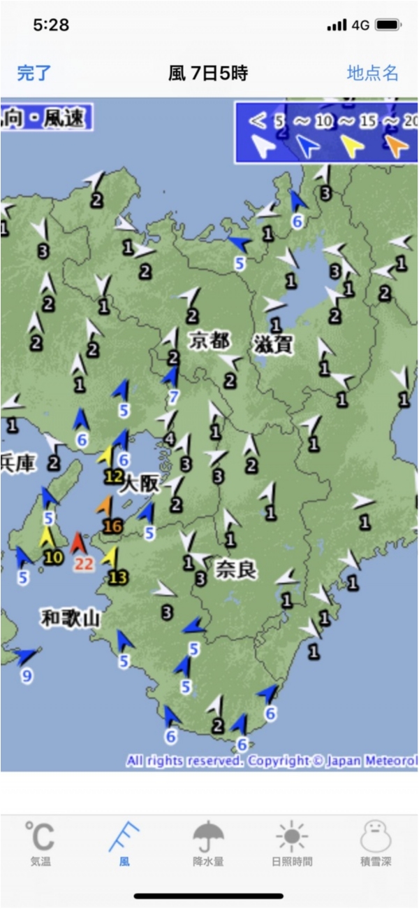 前日の予報では終日の爆風、大雨予報となっており、中止検討が必要な予報でした。