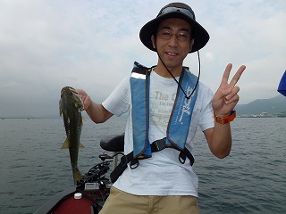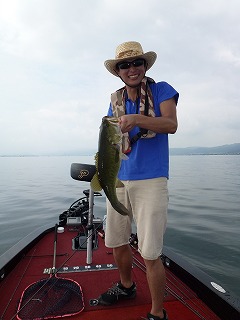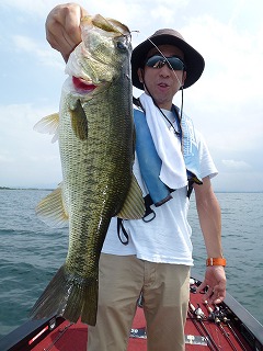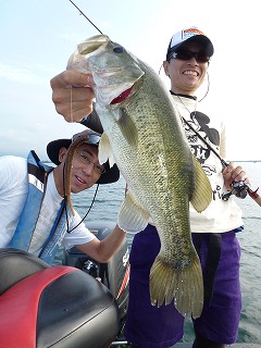 40アップに初心者のお二人は、「デカイ、デカイ」と大騒ぎ!周囲のボートの皆様、すいません!