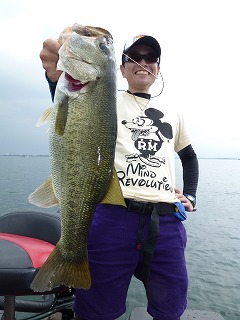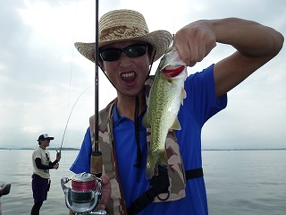 で、あと一人、管釣りマスが釣れなかったSさんが、人生初のバスをキャッチ!