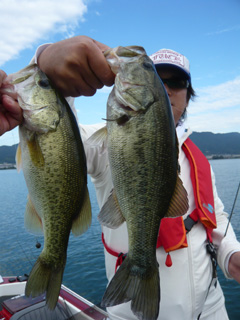雨でバイブ中心にバズベイト、トード、スピナーベイト、ジャークベイトとチャート系の派手ルアーでガンガンと攻める。