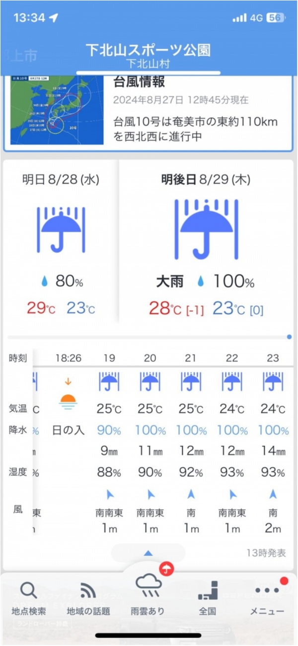 明日以降も滞在する予定でしたが、台風10号の進路が直撃予報だったので中止にしたら、今日になって予報は九州へ向かうとなっていた。