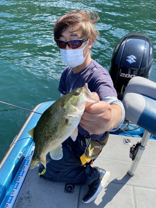 2m~4mのシャローの残りウィードからスタートするもI字系への反応が鈍くなったのでノーシンカー投入。時間を追うにつれて沖のディープスポットも空きが出てきたので入って、10m前後をフリックカーリーのダウンショットで入れ食いモードへ。