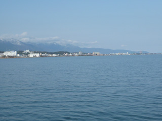 まずは陸路は凍結の危険があるので、湖上を一気北上。