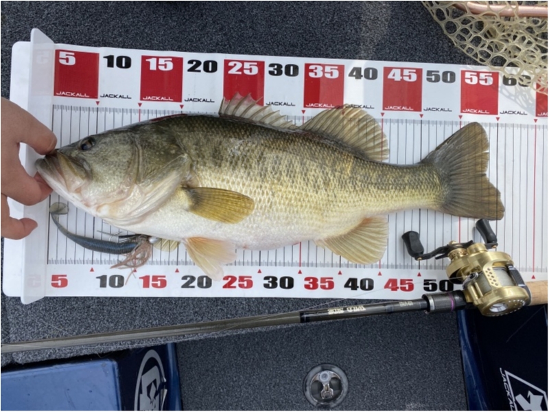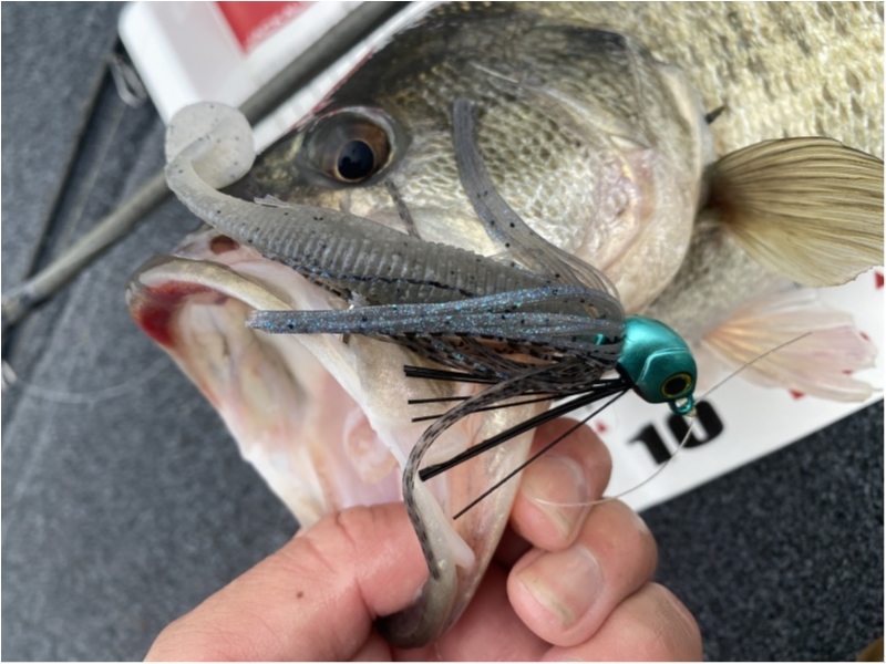 基本、ロッドはワイルドサイド69MHです。スイミングジグは1/2ozはWSC69MH、5/8ozはWSC72MHで行っております。ウェイト事にロッドを準備して、巻きリズムを作ることが釣果を伸ばすコツです。
