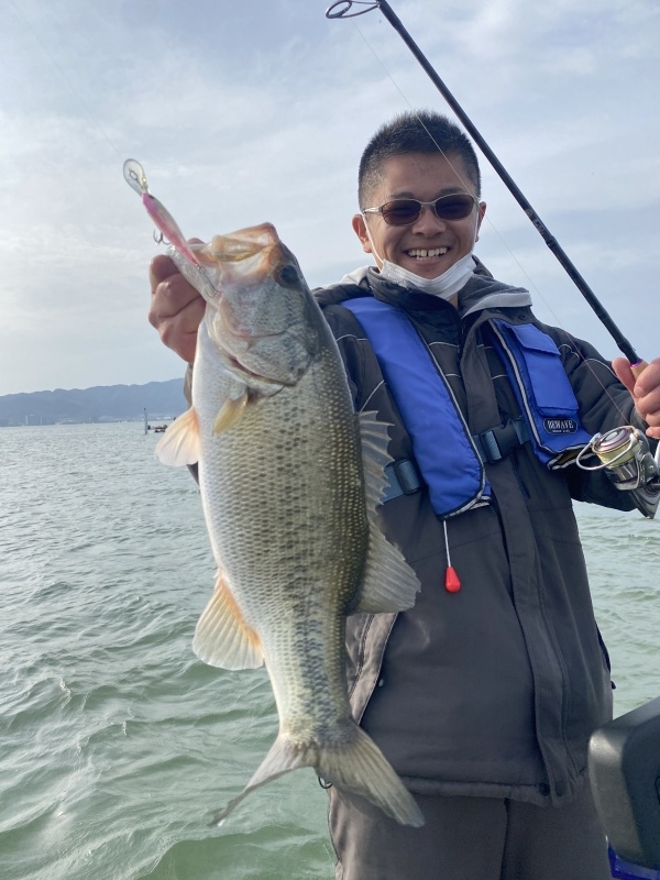 なんとかスイミングマスター1/2ozでゲストさんがワイルドサイド69MHでキャッチ。
