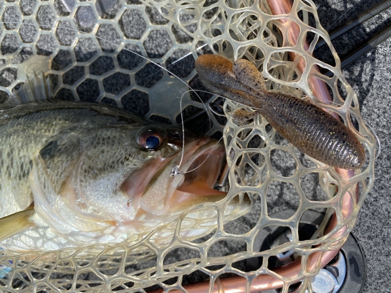 1本釣れたので、再びプリスポーンの個体に変更してベイトの群れをシャローから沖まで探し回るが、見つからない。