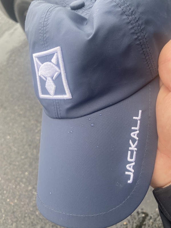 雨予報ということでジャッカルのレインキャップを装着。