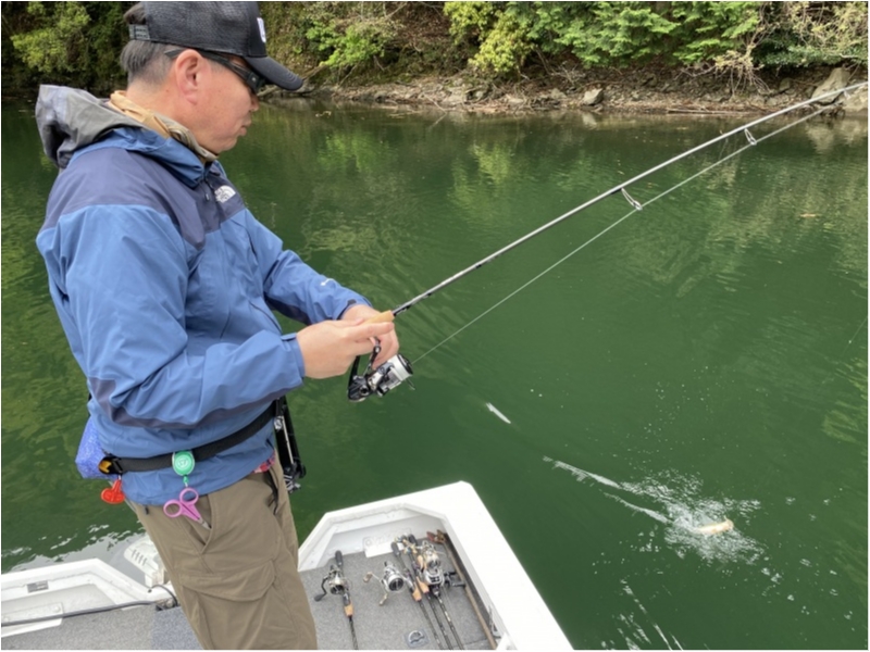 まずは、ヤミィスリム3.8のネコリグをワイルサイドWSSST59ULでキャストしていきますが、オーバーハングの木に引っ掛かっての回収からスタート。