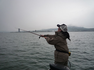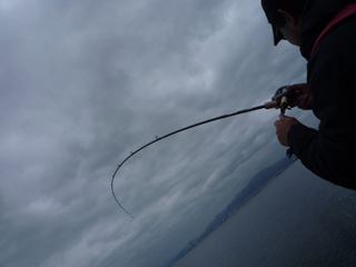 ご主人も何本か30台を釣り、何度もクランッチ切りフッキングを楽しみながら・・・。