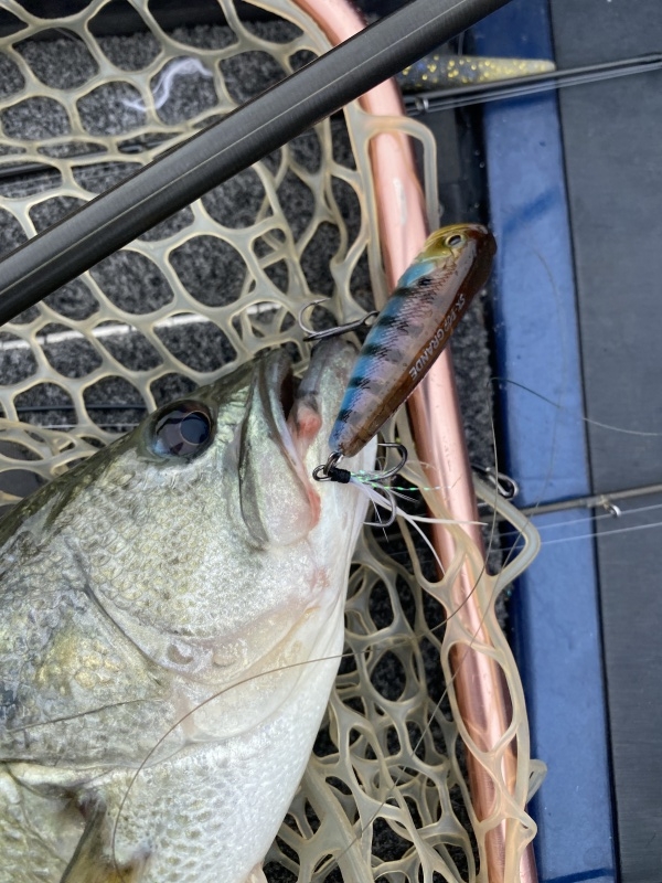 プラン変更で、午後から北湖に移動してナギサにチェイスはあるものの、レンジが深いのでバイトまで至らない。そこでリルビルで釣ってもらって、その後もポロポロと小型がヒット、さらにジャークするとニゴイ連発。