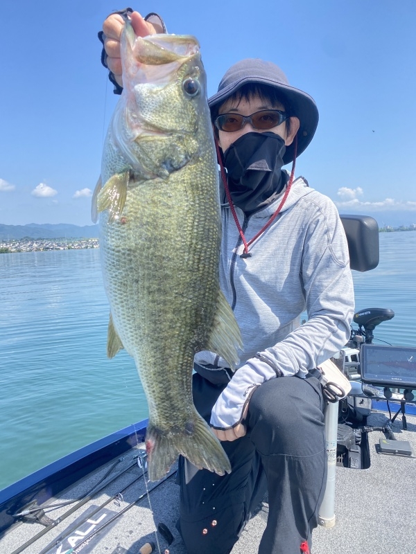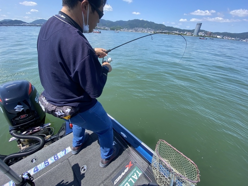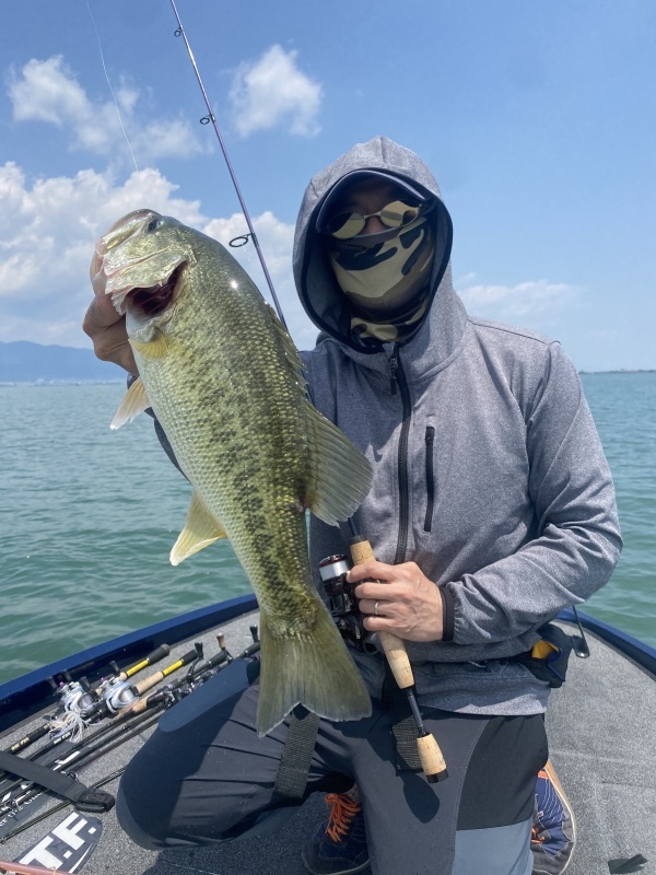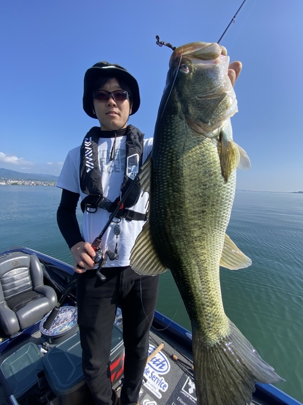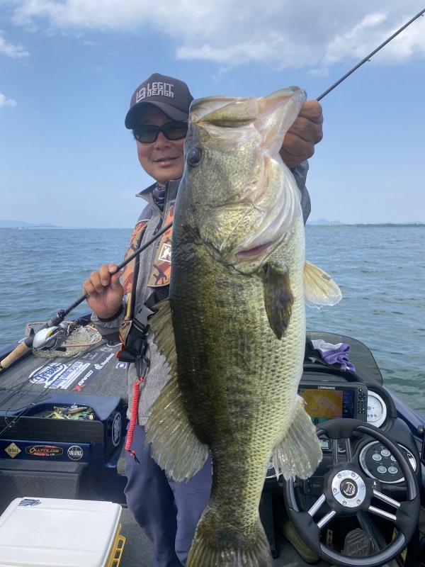 今日から6月。朝は南湖以外からの出船。大浦からスタートして奥琵琶湖の10パウンダー狙い。ゲストさんは常連さんなので少々ボゲってしまう可能性があっても、一生モノのメスを狙う作戦で奥琵琶湖からスタートするも、かなり目視できるバスの量が減っている状態。2匹ほどそれクラスを発見して何度もアタックしてみるもバスを止められず。天気予報は晴れ無風だったが、やや微妙な南風に薄曇りとなってきてボートも多くて、「こりゃ駄目だ」という感じで奥琵琶湖を撤収。という事で、また来年。