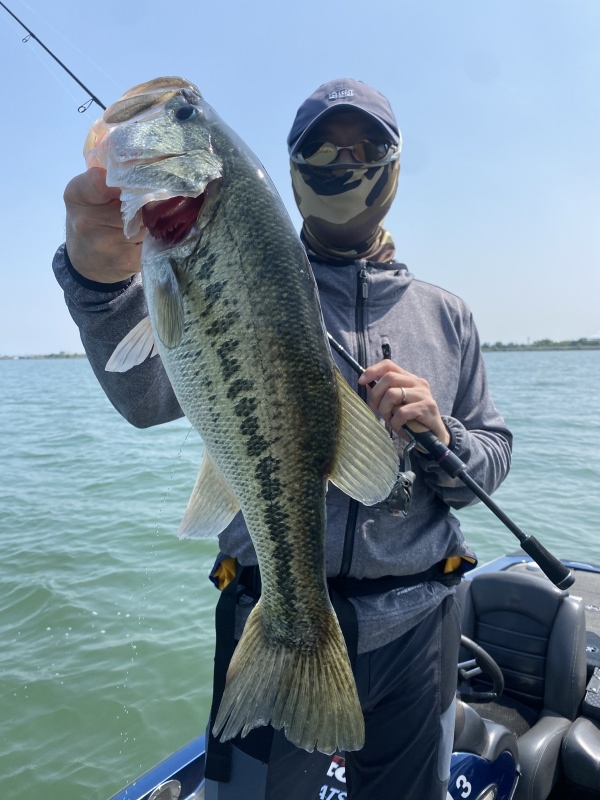 ネコリグ展開に変えてゲストさんにもヒットするも、エビモに巻かれて上がらず。このままでは出遅れてしまうと焦るところで、40アップがヒット。とりあえず「ホッ」としていると、すぐに2本目の45クラス。その後も粘るもボートが増えてきて回れるスポットが無くなる。