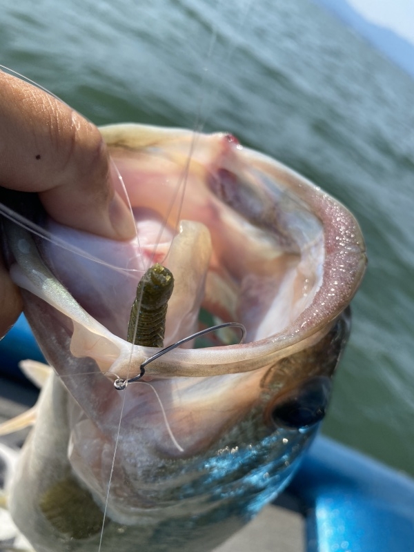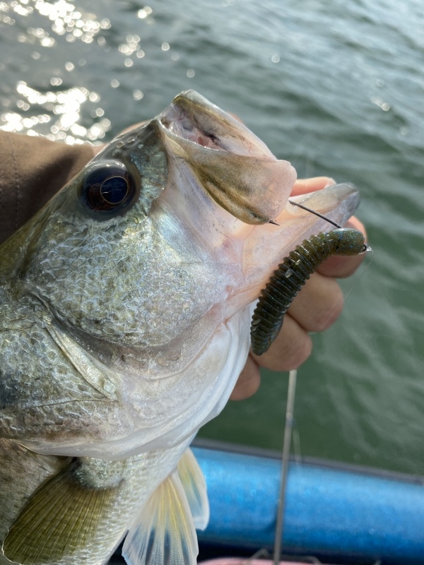 別にワームサイズが大きくてもバイトしてくるのですが、ギルバイトを出した方がよりエリアが絞りやすいので、あえて小型ワームのウォブリングにしています。