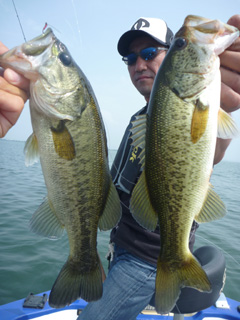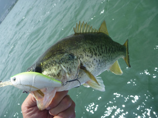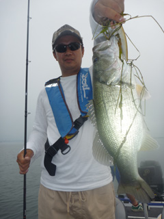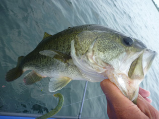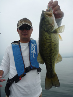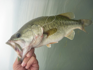 大半のバスがボテボテで口から手長エビが見えています。全開放流効果です。
