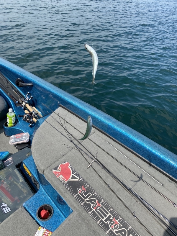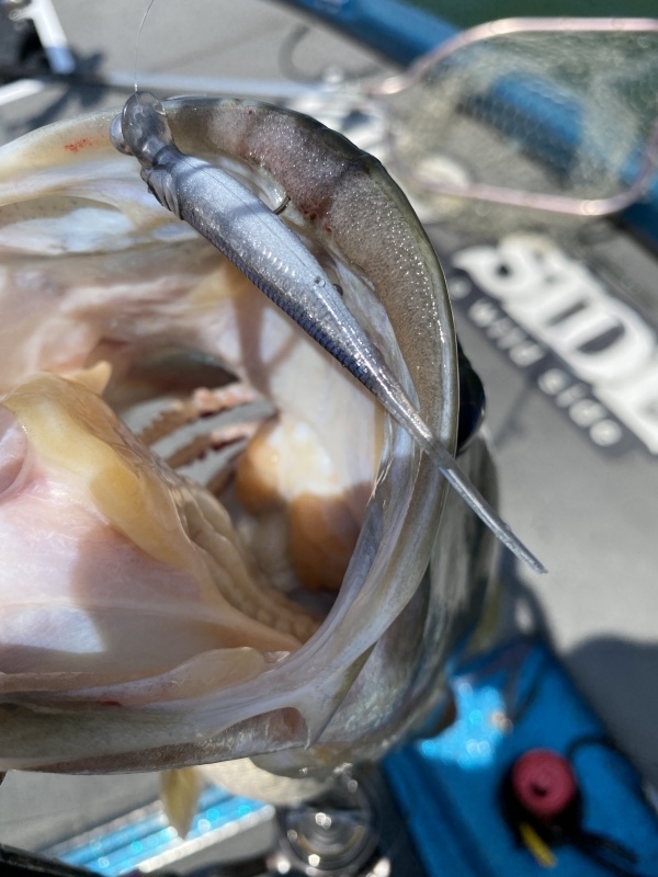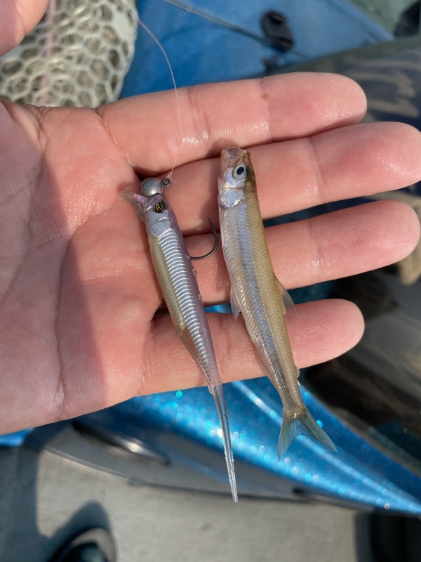 でも、最近はバスの稚魚も散り気味になっており、ワカサギのスクールでの展開が一番ビッグゲインに繋がっている。ハスを追う個体は動きが激しくて、なかなか難しいですが、1発大物となるとハスの破壊力が凄い。