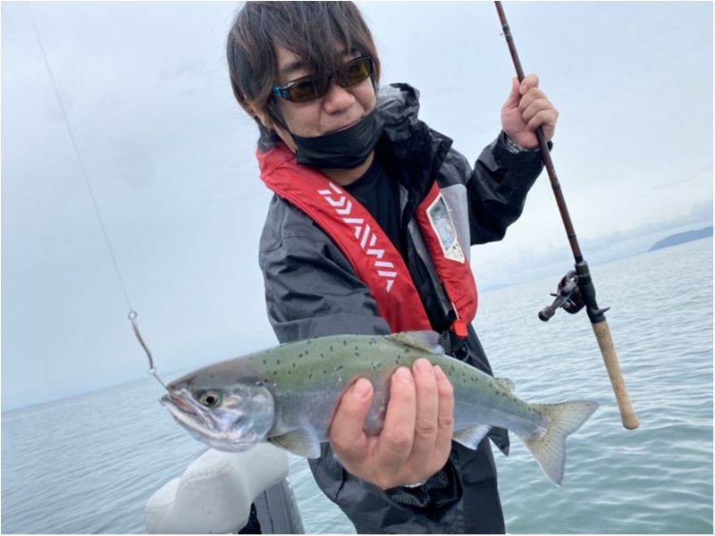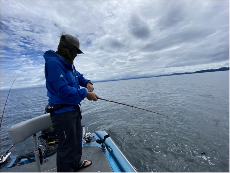 しばらくビワマスガイドが続いたので、バスの状況をチェックするために湖上へ。