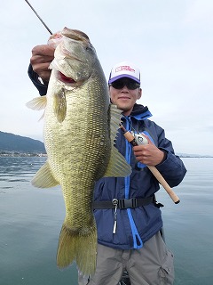 曇りの南湖でひたすら巻き勝負。単発ビッグフィシュですが、バイト数は少ないのでワンチャンスを必ずものにしないとなりません。結構、シビアな勝負となります。