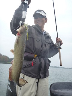雨なので楽勝かと思ったら、意外とシャロー側のシャッドが喰わない。