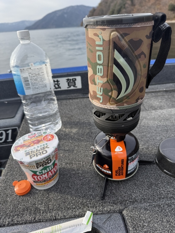 お昼はジェットボイルでランチタイム。さすがに寒くなってきたので暖かいものが欲しい。