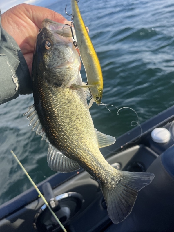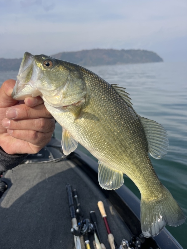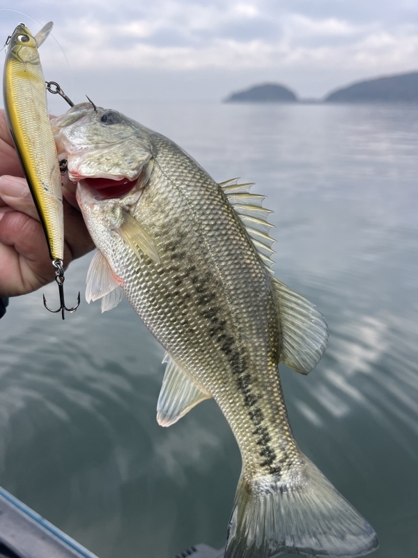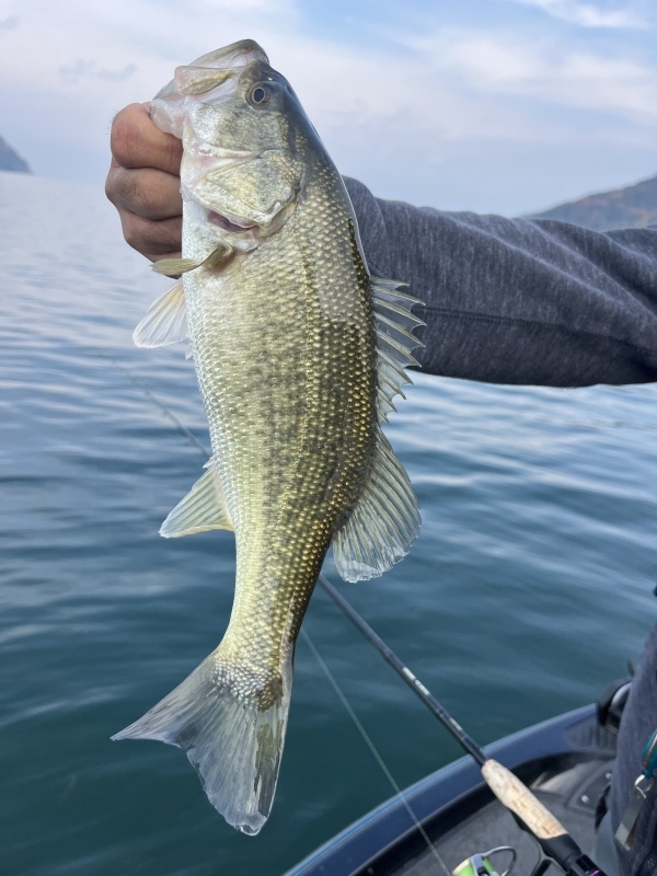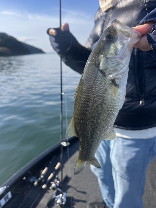 寒波後の湖上はバイトがないコンディション。丁寧に釣っていくとようやくゲストさんに...