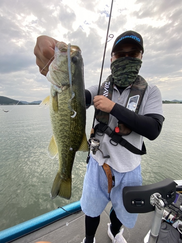 更にさらにビッグなサイズがヒットしますがボート際のウィードに潜られてラインブレイク。