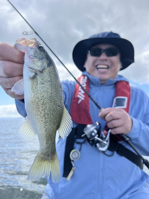 寒波後の湖上はバイトがないコンディション。丁寧に釣っていくとようやくゲストさんに...