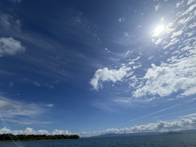 肌寒い感じに冷え込んだ朝、琵琶湖初チャレンジのゲストさんと湖上へ。