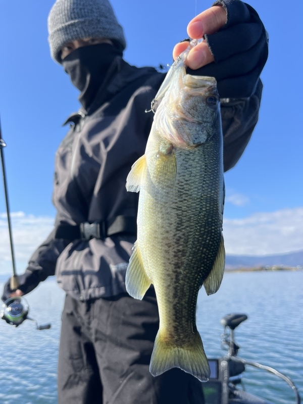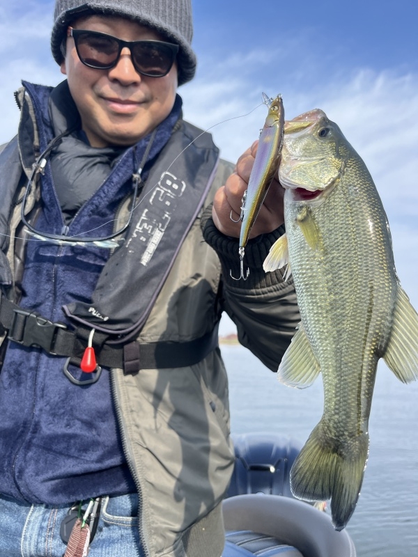 寒波後の湖上はバイトがないコンディション。丁寧に釣っていくとようやくゲストさんに...